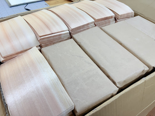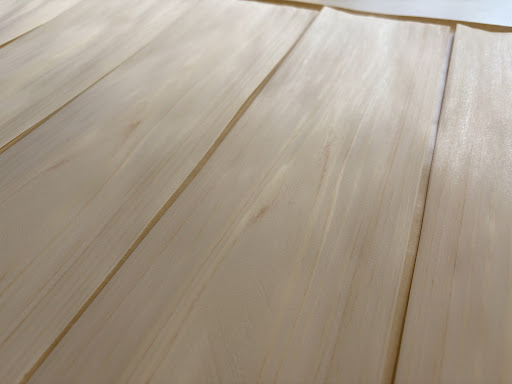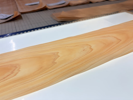 まずは画像のように紙と単板を貼り合わせてから、MDF・紙・…
