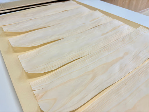 本日は琉球松の糊付け作業を行っています!